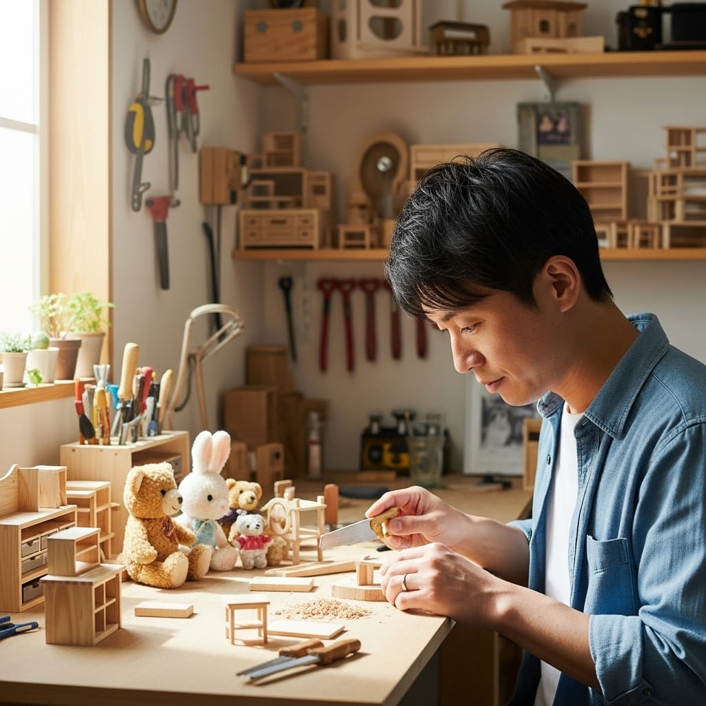 ぬいが座るための小さな椅子を作ったり、ぬいの服やアクセサリーを自作したりするんだ。