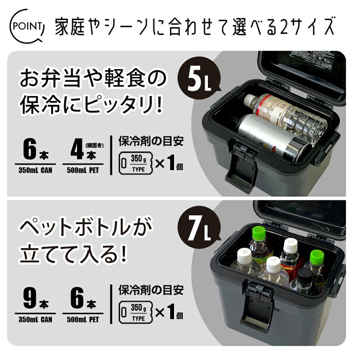 ドリンク収容目安 | 350ml缶(6〜8缶) ワインボトル(4本) ※氷同梱時 |