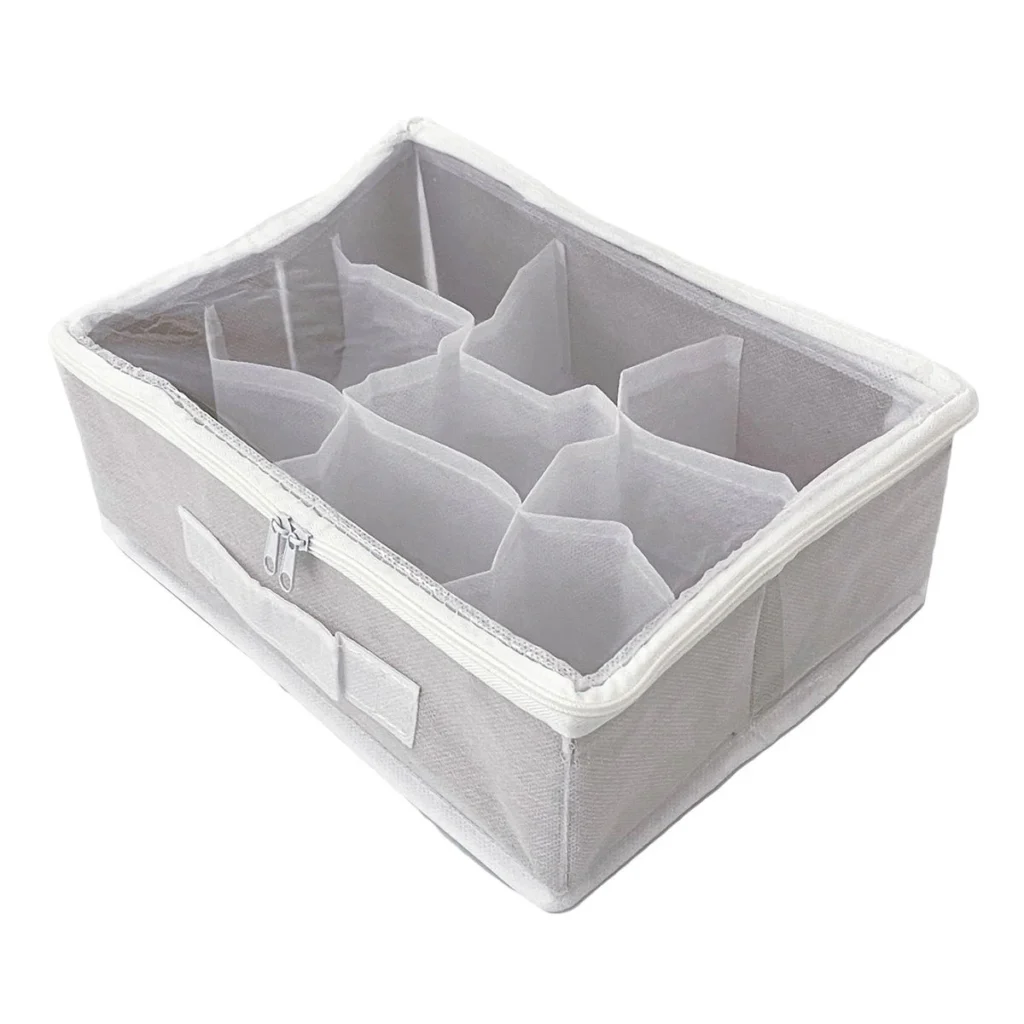 9個小分け仕切りのあるふた付ぬいぐるみ収納ボックス。