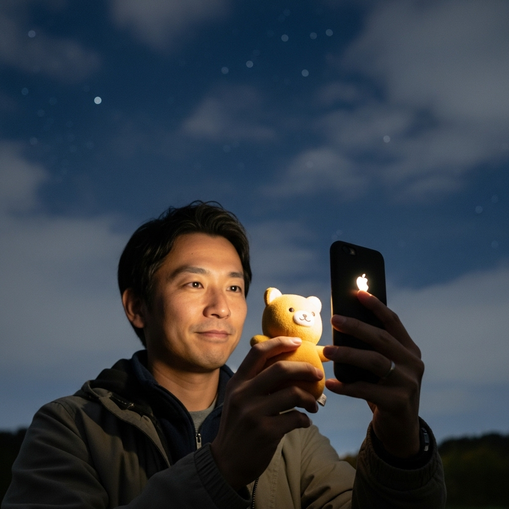 長時間露光や小型ライトを使った演出で、幻想的なぬいぐるみ写真が撮れます。