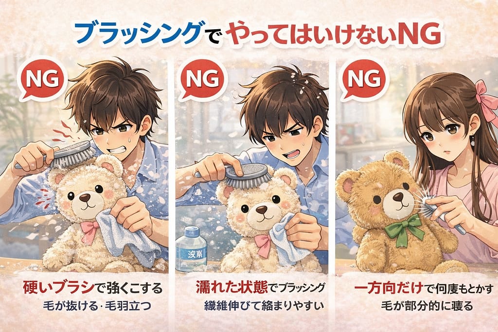 ぬい活では「撫でる程度」を基準にし、ブラシも柔らかいものを選ぶのが安全です。
