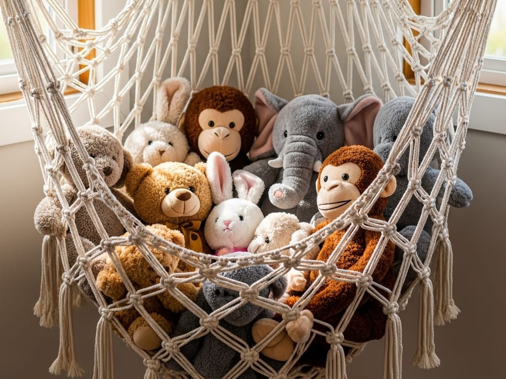 部屋の角などのデッドスペースを有効活用できるのが、ぬいぐるみ用の収納ハンモックです。