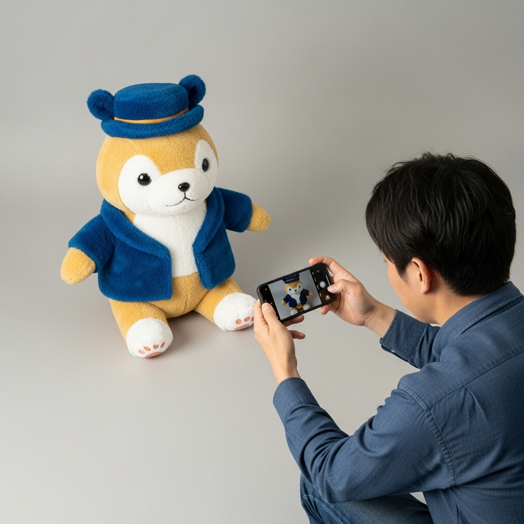 様々な角度から、あなたのぬいぐるみが最も魅力的に見えるアングルを探してみましょう。
