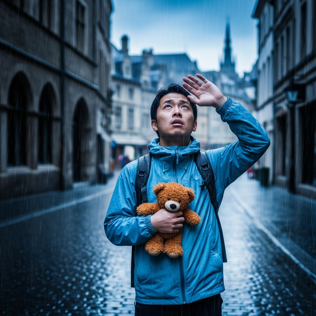 出発前にぬいぐるみに軽く防水スプレーをかけておくと、少しの雨なら弾いてくれます。