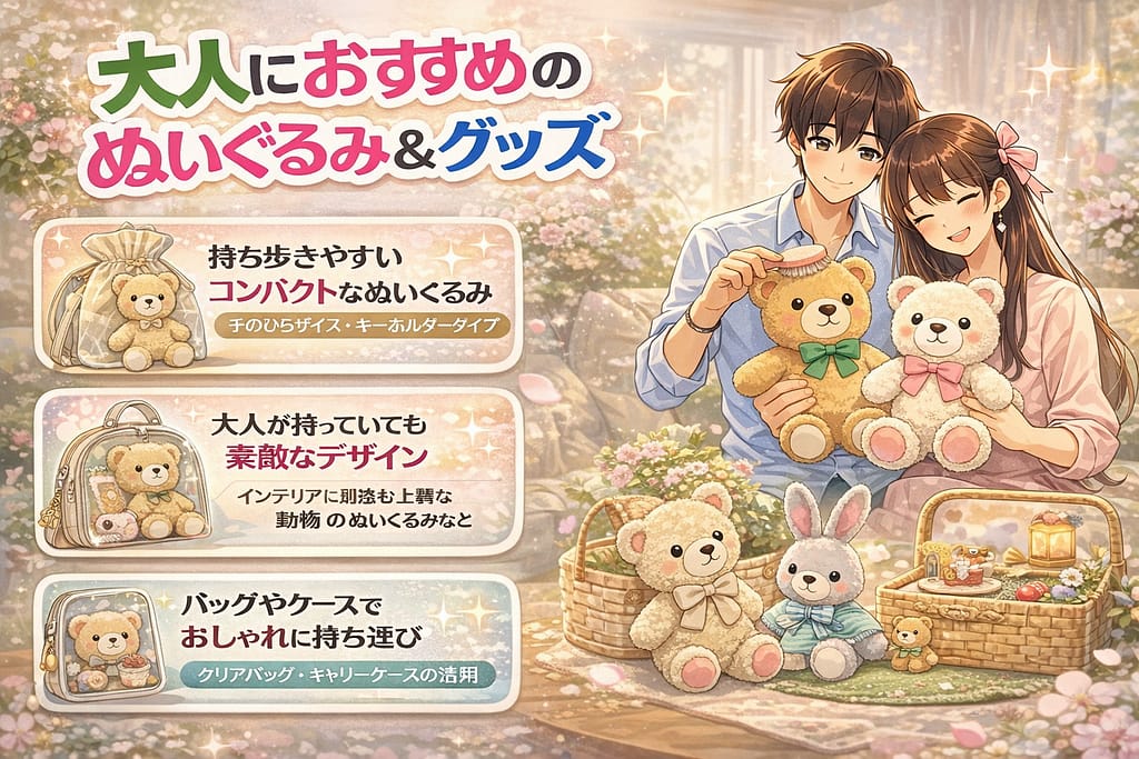 この記事では、大人がぬい活を楽しむ魅力や、恥ずかしさを感じずに始められるコツ、さらにおすすめのぬいぐるみや便利グッズまで詳しく解説していきます。